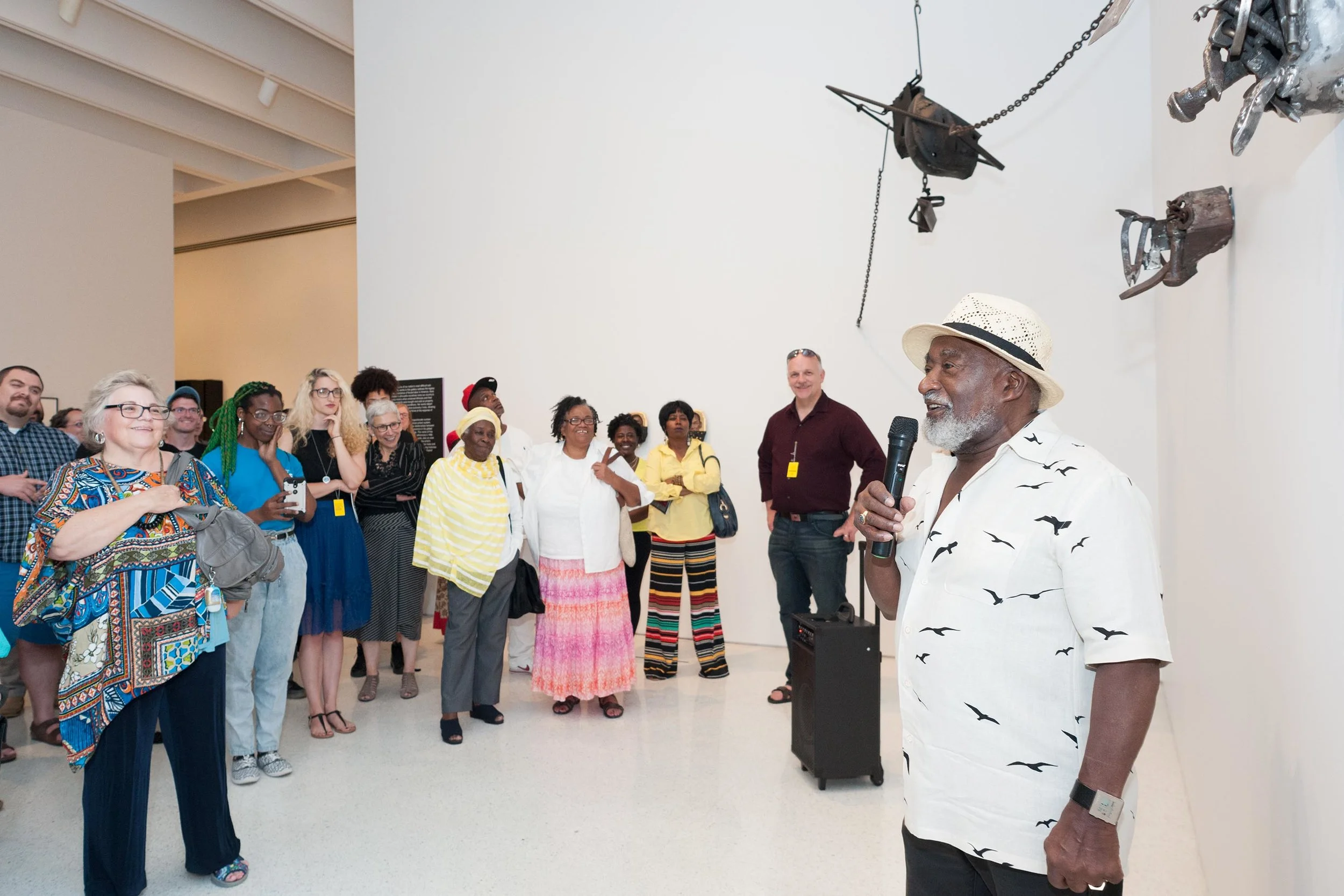 Thaddeus Mosley presenting at the 20/20 exhibition Gallery Conversations event in partnership with By Any Means. August 3, 2017. Courtesy of the Carnegie Museum of Art.